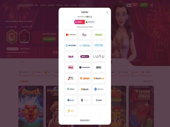 कैसीनो इन्फिनिटी के पास अपने ग्राहकों के लिए बैंकिंग विकल्पों का एक अद्भुत संग्रह है। चाहे आप वीज़ा, मास्टरकार्ड , नेटेलर और स्क्रिल जैसे लोकप्रिय विकल्पों का उपयोग करना पसंद करते हों, या बिटकॉइन, लाइटकॉइन और एथेरियम जैसी क्रिप्टोकरेंसी का उपयोग करना पसंद करते हों, आप ऐसा कर पाएँगे।