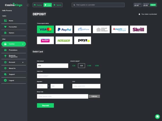 कैसीनो किंग्स आपकी जानकारी को 128-बिट SSL एन्क्रिप्शन के ज़रिए सुरक्षित रखता है, जो आपको हैकर्स से बचाने के लिए ज़रूरी है। यह आपके डेटा को कैसीनो और आपके कंप्यूटर के बीच स्थानांतरित करते समय एन्क्रिप्ट करके हासिल किया जाता है। हम आपको केवल उन्हीं कैसीनो में खेलने की सलाह देते हैं जो इस एन्क्रिप्शन प्रक्रिया का इस्तेमाल करते हैं।
