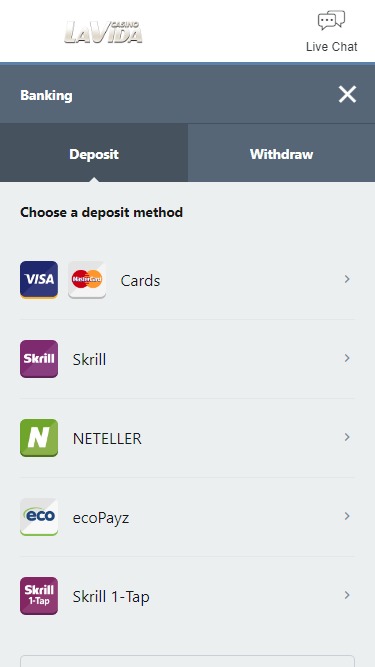 Casino La Vida Microgaming, Evolution Gaming and Games Global द्वारा संचालित है, जो स्लॉट्स, टेबल गेम्स और वीडियो पोकर जैसे सैकड़ों गेम प्रदान करता है। कैसीनो को वेब-आधारित प्लेटफ़ॉर्म और डाउनलोड करने योग्य सॉफ़्टवेयर, दोनों के माध्यम से एक्सेस किया जा सकता है। इसकी एक मोबाइल साइट भी है, जो उन सट्टेबाजों के लिए उपलब्ध है जो अपने स्मार्टफ़ोन और टैबलेट के माध्यम से खेलना चाहते हैं।