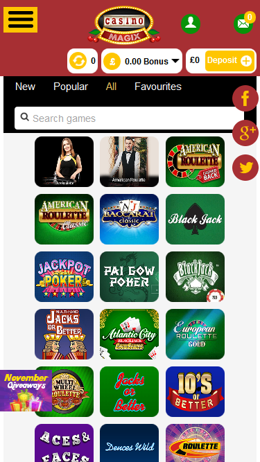 कैसीनो मैजिक्स Microgaming, Net Entertainment, EYECON, Genesis Gaming, Thunderkick, Games Global, Wizard Games, Blueprint Gaming, Cozy Games, NextGen and Pariplay द्वारा संचालित है, और इसके गेम एक वेब-आधारित प्लेटफ़ॉर्म के माध्यम से उपलब्ध कराए जाते हैं। जो लोग अपने स्मार्टफ़ोन या टैबलेट के ज़रिए गेम खेलना पसंद करते हैं, उनके लिए एक मोबाइल साइट भी उपलब्ध है।Blackjack