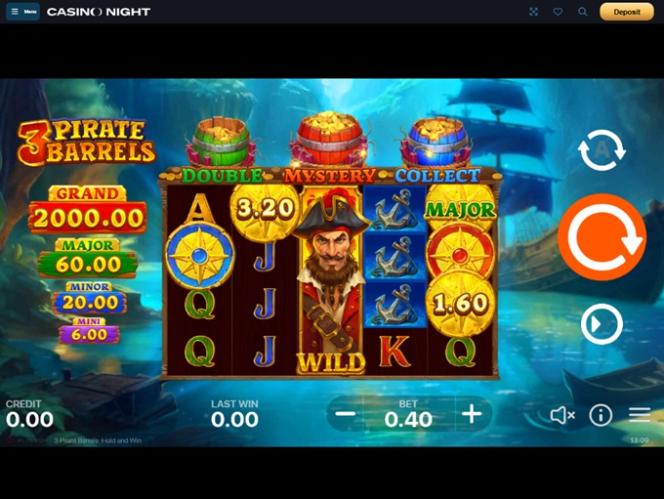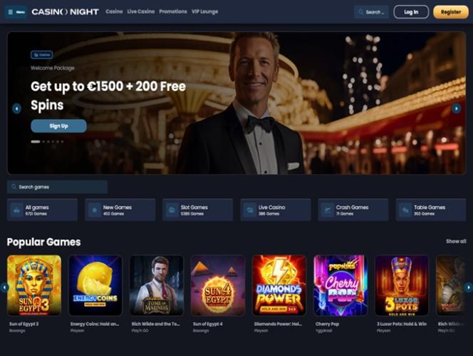 कैसीनो नाइट में स्लॉट गेम्स का एक विशाल संग्रह है, जिसमें पाँच हज़ार से ज़्यादा उपलब्ध गेम हैं, जिन्हें उपश्रेणियों में व्यवस्थित किया गया है: लोकप्रिय, बोनस खरीद, जैकपॉट और मेगावेज़। निश्चित रूप से, जुआरी यहाँ बोर नहीं होंगे, क्योंकि ये श्रेणियाँ हर अनुभव स्तर और रुचि के खिलाड़ियों के लिए बेहतरीन गेम से भरी हैं।