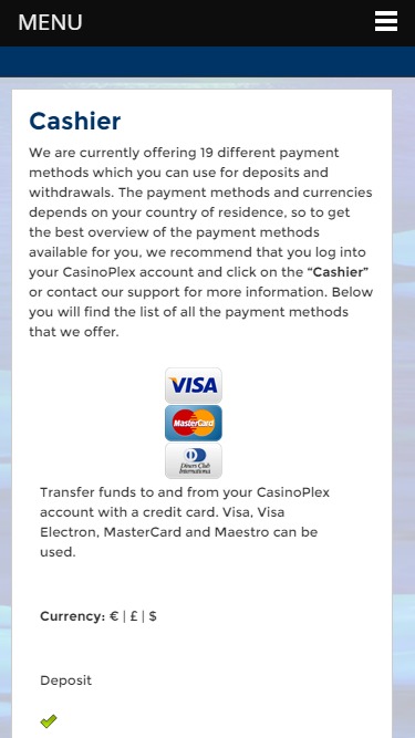 कैसीनो प्लेक्स एक ऑनलाइन सट्टेबाजी साइट है जिसे 2003 में स्थापित किया गया था और 2010 से ई-प्ले24 लिमिटेड द्वारा प्रबंधित किया गया है। यह साइट अपने खिलाड़ियों को कैसीनो गेम, लाइव डीलर गेम और पोकर क्लाइंट का चयन प्रदान करती है, और यह बहुत तेज़ निकासी समय और आकर्षक बोनस के कारण बहुत लोकप्रिय साबित हुई है।कैसीनो जानकारी