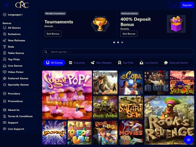 कैसीनो रॉयल क्लब Rival द्वारा संचालित है, और कैसीनो के खेल डाउनलोड करने योग्य सॉफ्टवेयर और वेब-आधारित प्लेटफॉर्म दोनों के माध्यम से उपलब्ध कराए जाते हैं।अन्य खेल