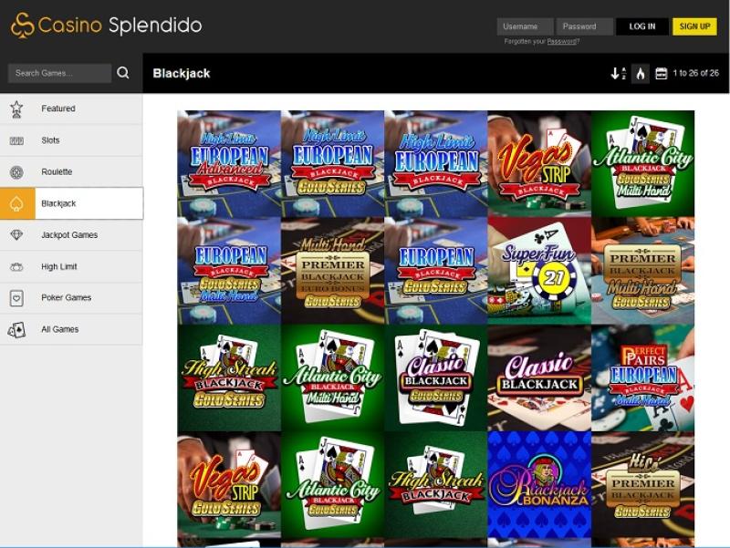 Casino Splendido Microgaming and Games Global द्वारा संचालित है, जो खिलाड़ियों को एक विस्तृत गेमिंग लाइब्रेरी प्रदान करता है जो एक वेब-आधारित प्लेटफ़ॉर्म के साथ-साथ एक डाउनलोड करने योग्य सॉफ़्टवेयर के माध्यम से भी उपलब्ध है जो गेम्स को सीधे आपके कंप्यूटर पर उपलब्ध कराता है। चलते-फिरते खेलने के इच्छुक लोगों के लिए एक मोबाइल साइट भी उपलब्ध है।Blackjack