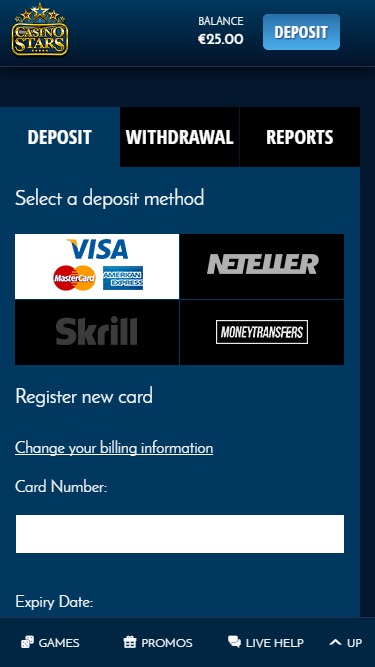 कैसीनो स्टार्स एक ऑनलाइन सट्टेबाजी साइट है जिसकी स्थापना 2013 में हुई थी और यह यूरोपीय सट्टेबाजी बाज़ार में अपनी सेवाएँ देती है। इस कैसीनो का सेटअप दिलचस्प है और इसकी लाइब्रेरी अन्य खिलाड़ियों द्वारा पहले देखे गए अनुभव से थोड़ी अलग है। अपने दिलचस्प लुक और अनोखे प्रमोशन के साथ, कैसीनो स्टार्स एक ऐसा कैसीनो है जिस पर आपको ज़रूर गौर करना चाहिए अगर आप कुछ नया खोज रहे हैं।कैसीनो जानकारी