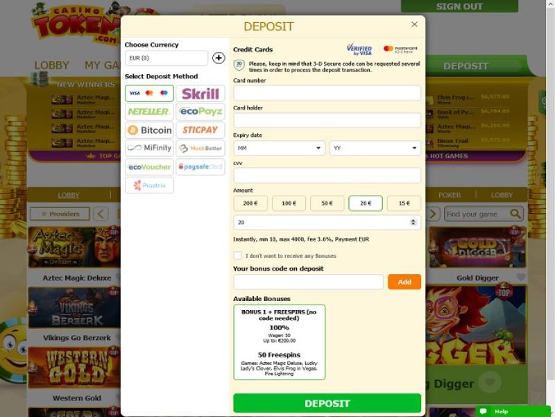 कैसीनो टोकन की बैंकिंग प्रणाली अच्छी है, जहाँ खिलाड़ी क्रिप्टोकरेंसी का उपयोग करके तेज़ी से धनराशि स्थानांतरित कर सकते हैं। जीत पर 24 घंटे का पेंडिंग समय होता है, लेकिन उसके तुरंत बाद ई-वॉलेट से भुगतान कर दिया जाता है। क्रेडिट कार्ड से भुगतान पूरा होने में 1-3 दिन लगते हैं। खिलाड़ियों के लिए साप्ताहिक निकासी सीमा $4,000 और मासिक निकासी सीमा $15,000 है।