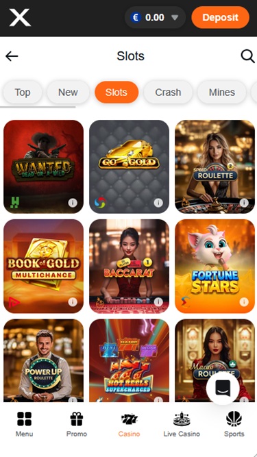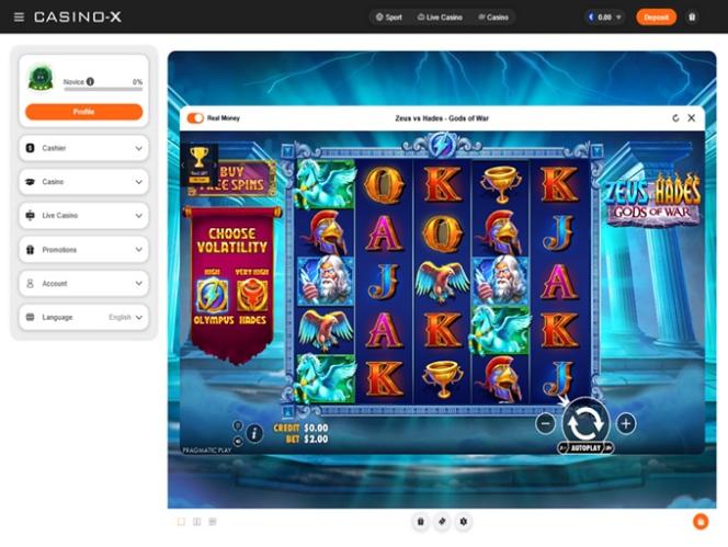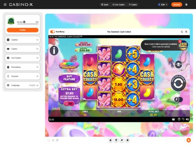 कैसीनो-एक्स में सैकड़ों वीडियो स्लॉट उपलब्ध हैं, साथ ही क्लासिक गेम्स का एक अच्छा संग्रह भी उपलब्ध है। कैसीनो अपने ग्राहकों को प्रोग्रेसिव जैकपॉट भी प्रदान करता है, जिसमें किसी भी समय लाखों के इनाम उपलब्ध होते हैं।