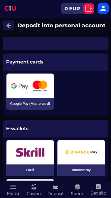 कैसीनोएंडयू 50 से ज़्यादा भुगतान विधियों का समर्थन करता है, जिनमें वीज़ा, मास्टरकार्ड, स्क्रिल, नेटेलर जैसी क्लासिक भुगतान विधियाँ और 30 से ज़्यादा क्रिप्टोकरेंसी शामिल हैं—बिटकॉइन, एथेरियम, लाइटकॉइन, ट्रॉन, डॉगकॉइन, यूएसडीटी, आप नाम बताइए। क्षेत्रीय खिलाड़ियों के लिए चीज़ें आसान बनाने के लिए वे पापारा और जेटन जैसे स्थानीय भुगतान समाधानों का भी समर्थन करते हैं।