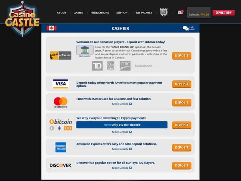 कैसीनो कैसल एक विशाल गेमिंग लाइब्रेरी प्रदान नहीं करता है, लेकिन इसके बावजूद, आप विभिन्न प्रकार के ऑनलाइन उत्पाद पा सकते हैं। कंपनी के गेम ऑफ़र का मूल भाग मुख्यतः स्लॉट्स पर आधारित है, लेकिन टेबल गेम के सभी प्रशंसक ब्लैकजैक के विभिन्न प्रकारों का आनंद ले सकते हैं। इसके अलावा, हमें कई वीडियो पोकर गेम्स के साथ-साथ बिंगो टाइटल्स का भी उल्लेख करना चाहिए।ज़िम्मेदार जुआ, ग्राहक सहायता और सुरक्षा
