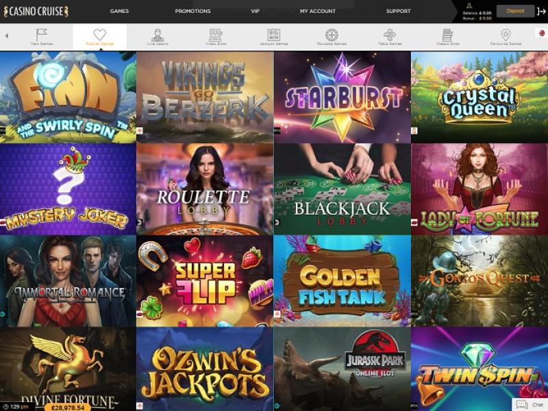 CasinoCruise Microgaming, Net Entertainment, Big Time Gaming, Evolution Gaming, Ezugi, iSoftBet, lightningboxgames, Oryx, Play'n GO, Quickspin, Relax Gaming, Yggdrasil, Wazdan, Pragmatic Play, Red Tiger Gaming, Skillzzgaming, Skywind, Triple Edge Studios, Northern Lights Gaming, Switch Studios, All41 Studios, Gameburger Studios, Neon Valley Studios, Golden Rock Studios, TrueLab Games, SpinPlay Games, GONG Gaming, Buck Stakes Entertainment, Games Global, 2by2 Gaming, Gamomat, Foxium, Just For The Win, PearFiction Studios, Slingshot Studios, Fortune Factory Studios, Crazy Tooth Studio, Alchemy Gaming, Snowborn Games, Gold Coin Studios, Half Pixel Studios, Eurostar Studios and Aurum Signature Studios द्वारा संचालित है, जो कुछ सर्वश्रेष्ठ ऑनलाइन गेमिंग डेवलपर्स से सैकड़ों अलग-अलग गेम लाता है।