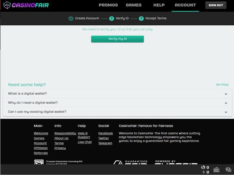 कैसीनोफेयर को कुराकाओ के अधिकार क्षेत्र के माध्यम से गेमिंग संचालन करने का लाइसेंस प्राप्त है, जो खिलाड़ियों को सुरक्षा के मामले में ज़्यादा कुछ प्रदान नहीं करता। फिर भी, गेमिंग लाइसेंस दर्शाता है कि संचालक निवेश करने को तैयार है और किसी भी लाइसेंस से परहेज करने वाली साइट की तुलना में उसके एक साल तक चलने की संभावना ज़्यादा है।