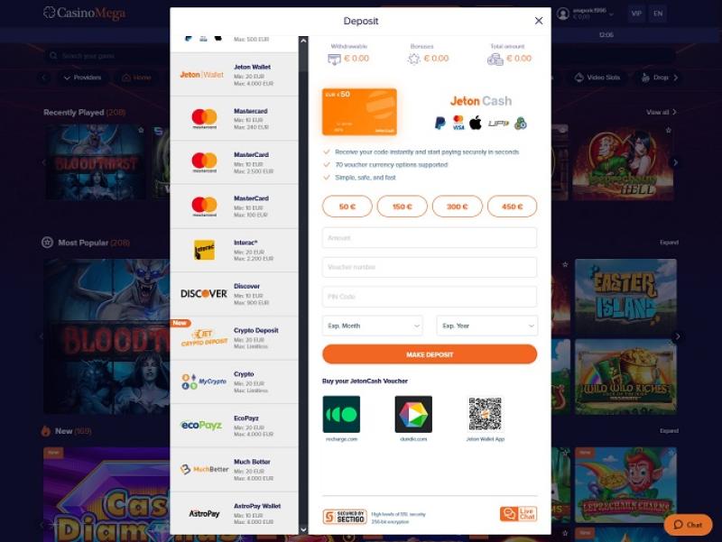 अब बैंकिंग विकल्पों की बात करते हैं। कैसीनोमेगा पर खेलते समय, आप वीज़ा, मास्टरकार्ड, जेटन, पेसेफकार्ड, स्क्रिल और कई अन्य लोकप्रिय विकल्पों के ज़रिए जमा करने का विकल्प चुन सकते हैं। नेटेलर के ज़रिए पैसे जमा करने का विकल्प भी उपलब्ध है, क्योंकि पिछले कुछ सालों में यह कई खिलाड़ियों के लिए एक बहुत लोकप्रिय विकल्प रहा है।