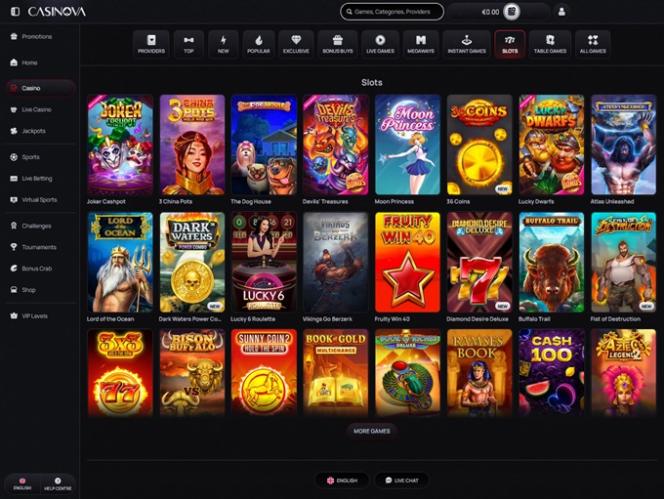 कैसिनोवा में खेलों का एक विशाल संग्रह है। हज़ारों स्लॉट गेम्स के अलावा, बाकी गेमिंग संग्रह भी उतना ही समृद्ध और आकर्षक है। इस कैसिनो में, जुआरी माइक्रोगेमिंग, इवोल्यूशन गेमिंग, एंडोर्फिना, क्विकस्पिन जैसी कुछ बेहतरीन iGaming सॉफ़्टवेयर कंपनियों द्वारा विकसित उच्च-गुणवत्ता वाले गेम आज़मा सकते हैं।