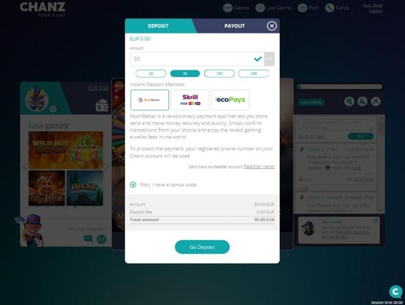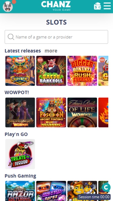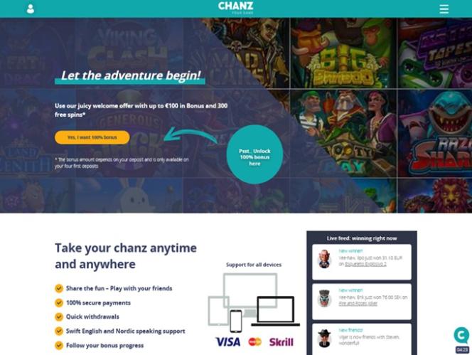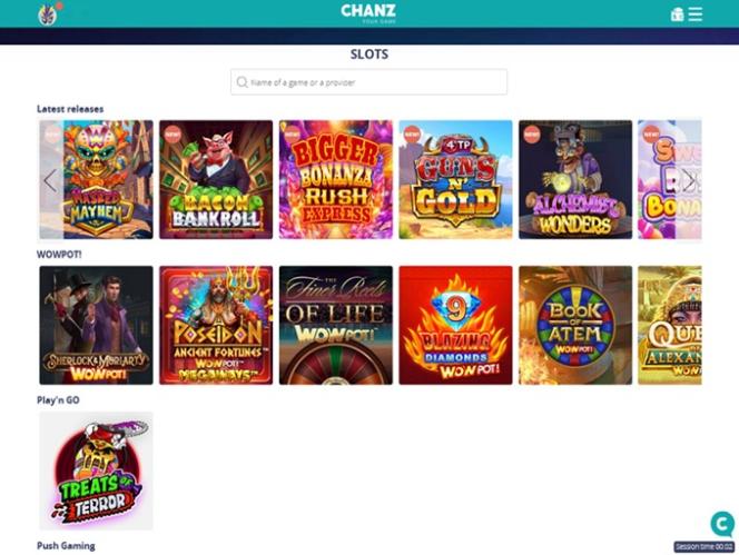 चैन्ज़ कैसीनो Microgaming, Net Entertainment, Big Time Gaming, Evolution Gaming, Genesis Gaming, Play'n GO, Rabcat, Thunderkick, Yggdrasil, Booming Games, Pragmatic Play, Red Tiger Gaming, Skillzzgaming, Fantasma Games, Triple Edge Studios, Northern Lights Gaming, Stormcraft Studios, Switch Studios, Bulletproof Games, All41 Studios, Gluck Games, Gameburger Studios, Pulse 8 Studios, Neon Valley Studios, Golden Rock Studios, SpinPlay Games, Real Dealer Studios, GONG Gaming, Buck Stakes Entertainment, Games Global, 2by2 Gaming, Push Gaming, Old Skool Studios, Foxium, Just For The Win, Reflex Gaming, Storm Gaming Technology, PearFiction Studios, Wild Streak Gaming, Slingshot Studios, Fortune Factory Studios, 4ThePlayer, AvatarUX, Gamevy, Crazy Tooth Studio, ReelPlay, Alchemy Gaming, Plank Gaming, Snowborn Games, Boomerang Studios, Hacksaw Gaming, Gold Coin Studios, Bang Bang Games, Half Pixel Studios, Peter And Sons, Eurostar Studios, Aurum Signature Studios, Area Vegas, Wishbone Games, Circular Arrow, HammerTime Games, INO Games, Nailed It! Games, Neko Games, Reel Kingdom and Oros Gaming द्वारा संचालित है, और इसके गेम एक वेब-आधारित इंस्टेंट प्ले प्लेटफ़ॉर्म के माध्यम से उपलब्ध कराए जाते हैं जो खिलाड़ियों को अपने इंटरनेट ब्राउज़र के माध्यम से पंजीकरण, बैंकिंग और गेम खेलने की सुविधा देता है। कैसीनो मोबाइल प्ले को भी सपोर्ट करता है, जिससे खिलाड़ी अपने स्मार्टफ़ोन और टैबलेट के माध्यम से एक्शन में शामिल हो सकते हैं।