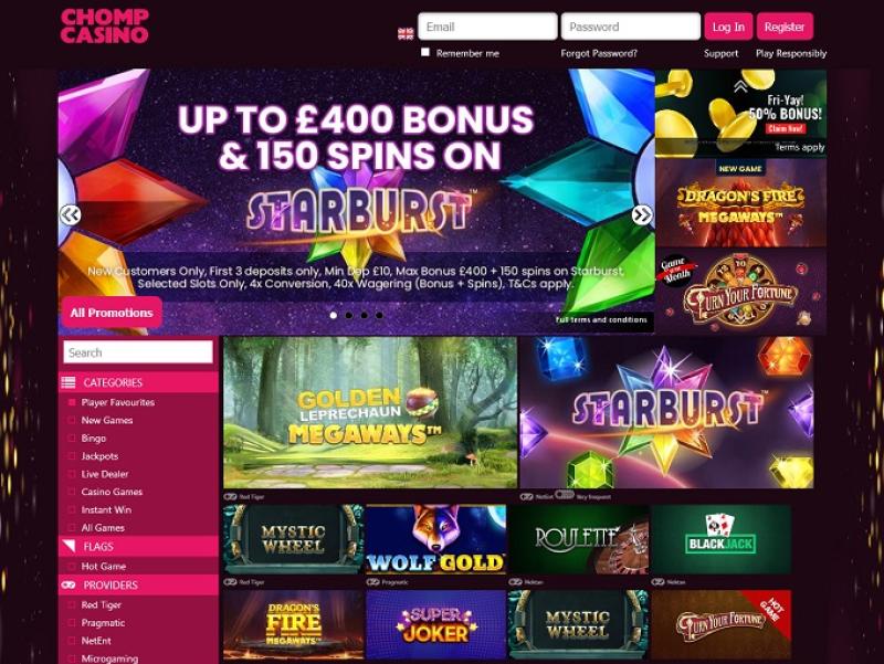 चॉम्प कैसीनो में स्लॉट्स पर विशेष ध्यान दिया जाता है, और खिलाड़ियों को इस साइट पर भुगतान के लिए ढेरों वीडियो स्लॉट्स मिलेंगे। प्रोग्रेसिव जैकपॉट भी दिए जाते हैं, जिससे खिलाड़ियों को रीलों के एक ही स्पिन पर लाखों जीतने का मौका मिलता है।