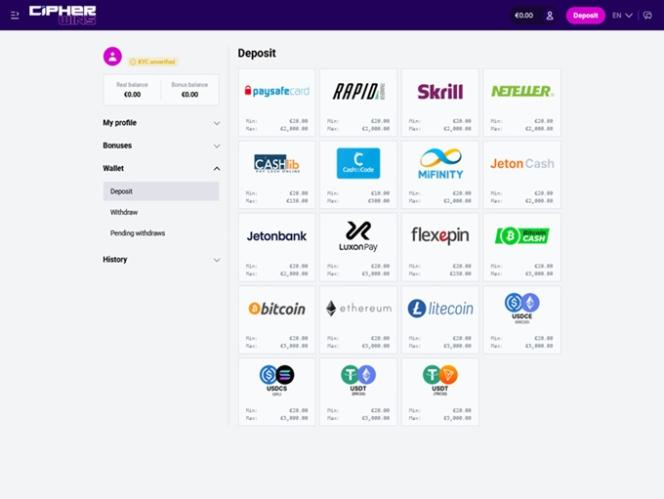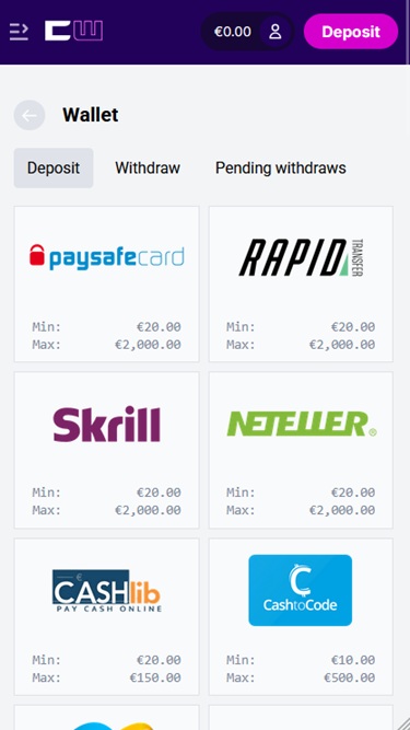 💰 न्यूनतम जमा€10 (CashToCode)/€20 (Other methods)