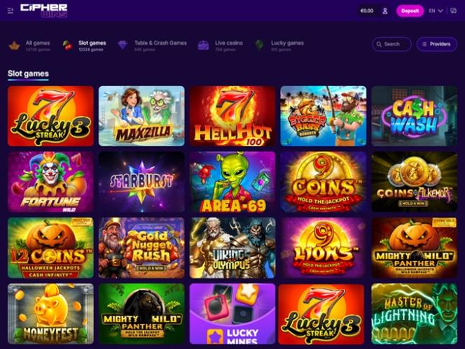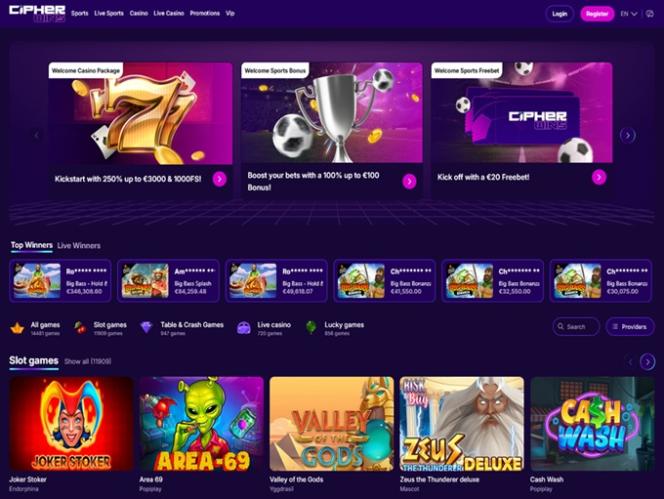 सिफर विंस इस क्षेत्र में बेहतरीन काम करता है। इस ब्रांड को 120 से ज़्यादा अलग-अलग सॉफ़्टवेयर प्रदाताओं से लाइसेंस मिले हैं और यह 15,000 से ज़्यादा गेम खेलने की सुविधा देता है। खिलाड़ी कई श्रेणियों में लोकप्रिय गेम्स के विशाल संग्रह का आनंद ले सकते हैं, साथ ही कुछ कम प्रसिद्ध लेकिन बेहतरीन विकल्प भी पा सकते हैं।