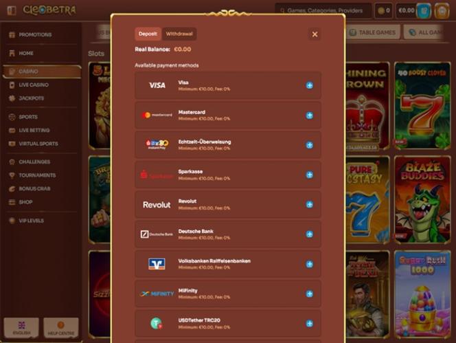 अगर आपको अभी तक पता नहीं चला है, तो बता दें कि इस ऑनलाइन कैसीनो का मुख्य विषय प्राचीन मिस्र की ऐतिहासिक रूप से प्रसिद्ध महारानी क्लियोपेट्रा पर केंद्रित है। चूँकि मिस्र जुआ उद्योग में हज़ारों खेलों के लिए प्रेरणा रहा है, इसलिए यह विषय इस वेबसाइट के लिए बिल्कुल उपयुक्त है। यह सहज उपयोगकर्ता इंटरफ़ेस के साथ खूबसूरती से काम करता है, जिससे खिलाड़ियों को नेविगेट करने में कोई समस्या नहीं होगी।