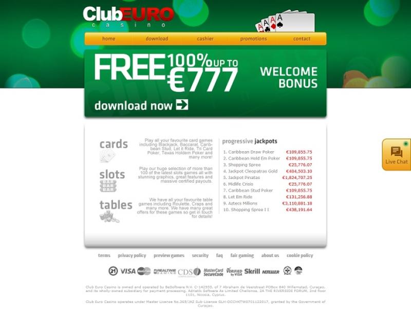 क्लब यूरो कैसीनो एक ऑनलाइन सट्टेबाजी साइट है जिसका संचालन क्लब वर्ल्ड ग्रुप द्वारा किया जाता है, जो एक सट्टेबाजी फर्म है और अच्छे प्रबंधन और विश्वसनीय भुगतान के लिए एक ठोस प्रतिष्ठा रखती है। यह कैसीनो यूरोप-केंद्रित है और आरटीजी द्वारा संचालित उन कुछ कैसीनो में से एक है जो अमेरिकी खिलाड़ियों को एक्शन की सुविधा नहीं देते। 2016 में क्लब वर्ल्ड ने एक पारिवारिक विवाद के कारण अपने सफल प्रबंधन को छोड़ दिया और इसके बजाय दुष्ट एफपावर समूह की प्रबंधन सलाह को अपनाने का विकल्प चुना। इसके कारण उन्हें ब्लैकलिस्ट कर दिया गया, क्योंकि तब से कैसीनो का संचालन घटिया ढंग से किया जा रहा है।
