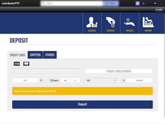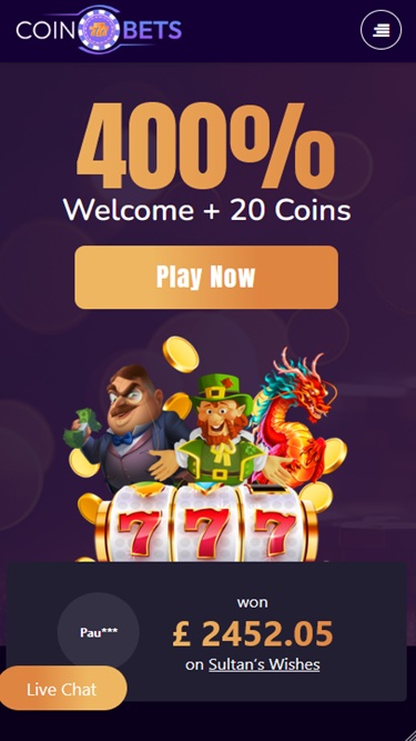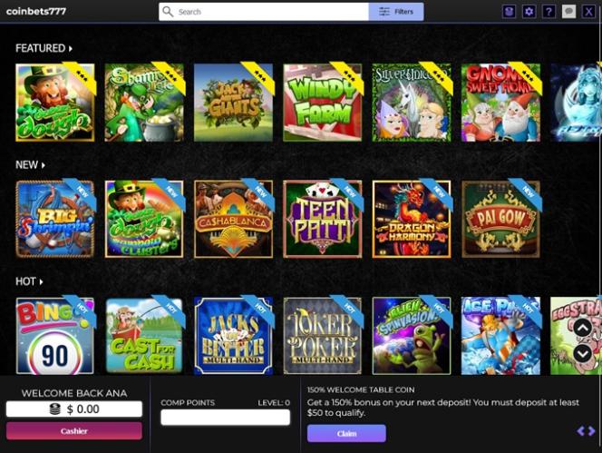 Coinbets777 कैसीनो एक ऑनलाइन गेमिंग वेबसाइट है जो मुख्य रूप से अमेरिकी खिलाड़ियों के लिए है, लेकिन अन्य अंतर्राष्ट्रीय खिलाड़ियों का भी इसमें शामिल होने का स्वागत है। ध्यान दें कि इस समीक्षा को लिखते समय कैसीनो के पास जुआ लाइसेंस नहीं था।