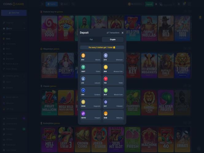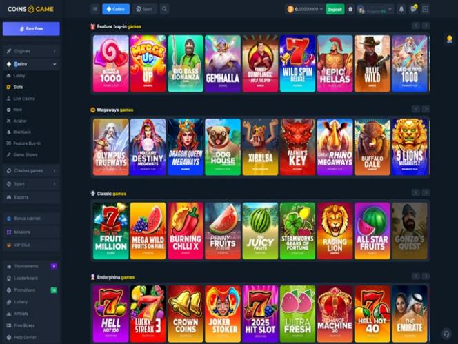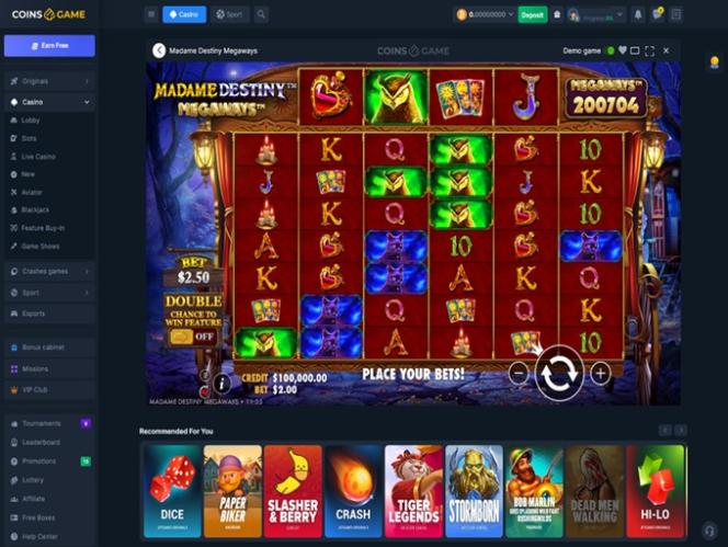 हालाँकि यह मूल रूप से मोबाइल के लिए बनाया गया है, यह कैसीनो प्लेटफ़ॉर्म सभी उपकरणों के लिए अनुकूलित है और डेस्कटॉप कैसीनो खिलाड़ियों को ज़रा भी निराश नहीं करेगा। इसे नवीनतम रुझानों के अनुसार और सर्वोत्तम उपलब्ध तकनीकी समाधानों का उपयोग करके बनाया गया है। Coins.Game ने अपने आकर्षक डिज़ाइन, आकर्षक नए-नए फीचर्स और उच्च-स्तरीय बोनस से हमारा ध्यान खींचा, जिससे हमारी उत्सुकता और भी बढ़ गई! लेकिन, आइए पहले कैसीनो के गेमिंग ऑफर पर एक नज़र डालते हैं।