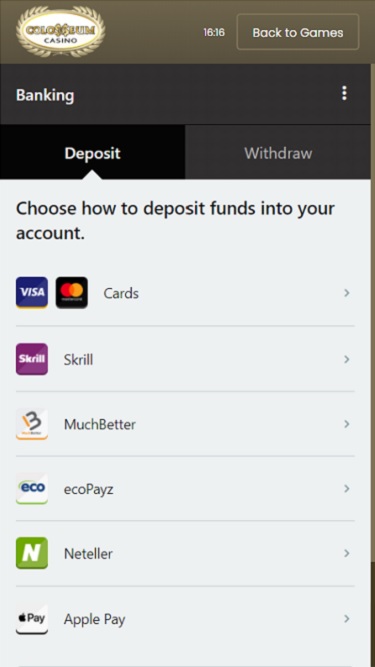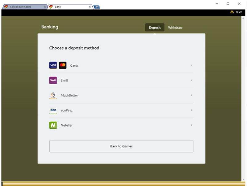 Colosseum Casino पर बैंकिंग विकल्प