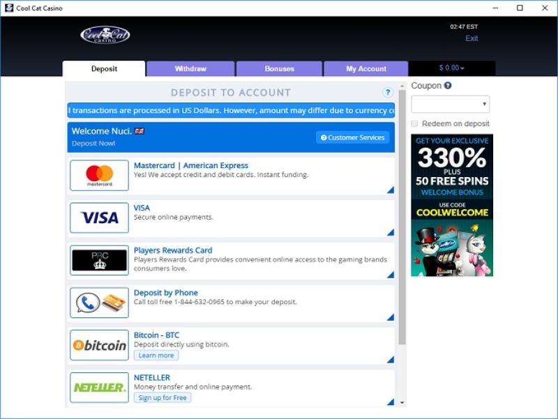 Cool Cat Casino पर बैंकिंग विकल्प