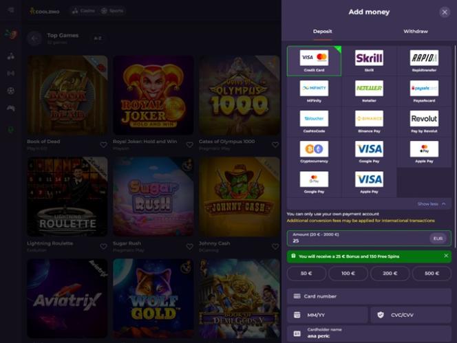 जो लोग ऑनलाइन कैसीनो पसंद करते हैं और जो कई तरह की जुआ गतिविधियाँ प्रदान करते हैं, उनके लिए कूलज़िनो कैसीनो में समय बिताना बहुत अच्छा रहेगा। यह ब्रांड ऑनलाइन स्लॉट, टेबल गेम, लाइव कैसीनो टाइटल और स्क्रैच कार्ड प्रदान करता है। ये विभिन्न आकारों और साइज़ में उपलब्ध हैं, और हमें लगता है कि अनुभवी खिलाड़ियों को भी कुछ ऐसा खोजने में कोई परेशानी नहीं होगी जो उन्होंने पहले नहीं खेला हो।
