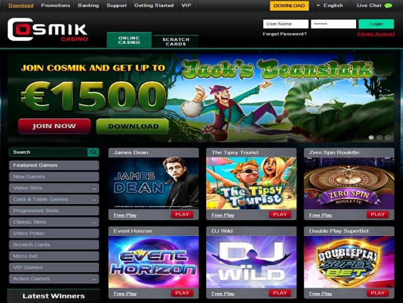 कॉस्मिक कैसीनो BetSoft, 1x2gaming, ELK Studios, GameScale, Nektan and NextGen द्वारा संचालित है, और इसके कैसीनो गेम वेब-आधारित प्लेटफॉर्म के माध्यम से प्रदान किए जाते हैं।अन्य खेल