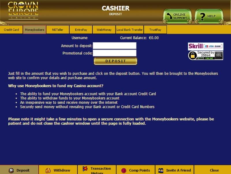 क्राउन यूरोप कैसीनो एक ऑनलाइन सट्टेबाजी साइट है जिसका स्वामित्व और संचालन सी गेट एनवी द्वारा किया जाता है, वही कैसीनो जो सिटी क्लब और सिटी टावर कैसीनो का संचालन करता है। वर्षों से, इस कैसीनो की बोनस से होने वाली जीत की सीमा, धीमी निकासी समयसीमा और प्रगतिशील जैकपॉट सहित $10,000 की मासिक निकासी सीमा के लिए आलोचना की जाती रही है।कैसीनो जानकारी