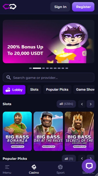 होम पेज सरल है, और आपको नेविगेशन में उलझने की चिंता नहीं करनी पड़ेगी। पेज के सबसे ऊपर, आप कैसीनो द्वारा प्रचारित सभी सुविधाएँ देख सकते हैं, जैसे स्वागत बोनस, प्रोवेबली फेयर सिस्टम और रेफर-अ-फ्रेंड प्रोग्राम।