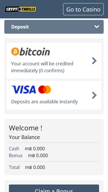 क्रिप्टो थ्रिल्स में केवल क्रिप्टोकरेंसी वाली बैंकिंग सेवाएँ उपलब्ध हैं, जिनमें बिटकॉइन, लाइटकॉइन और बिटकॉइन कैश सपोर्ट शामिल है। इस साइट पर प्रति सप्ताह भुगतान की सीमा 400 mBTC है, जो इस समीक्षा के प्रकाशन के अनुसार $1,573 के बराबर है। हालाँकि, गति अच्छी है, क्योंकि भुगतान लगभग तुरंत आपके वॉलेट में आ जाना चाहिए।