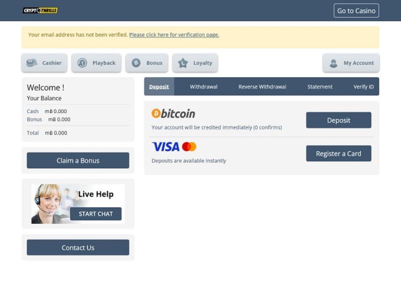क्रिप्टो थ्रिल्स में कोई वीआईपी या कॉम्प प्रोग्राम नहीं है, लेकिन साइट मासिक नुकसान पर कैश बैक की पेशकश करती है।