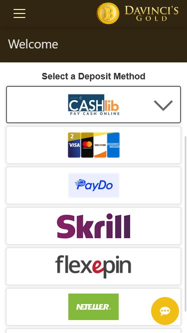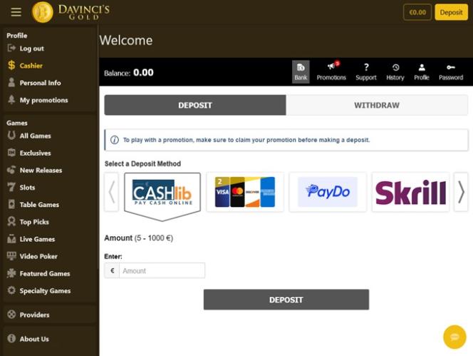 DaVinci's Gold Casino पर बैंकिंग विकल्प