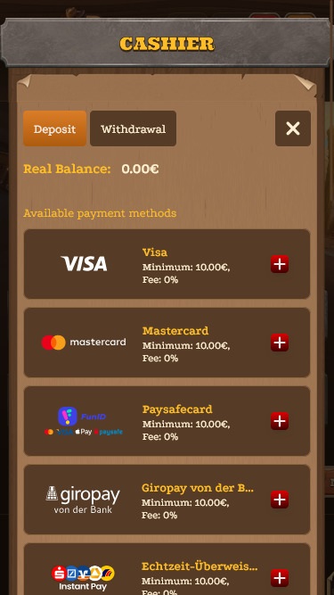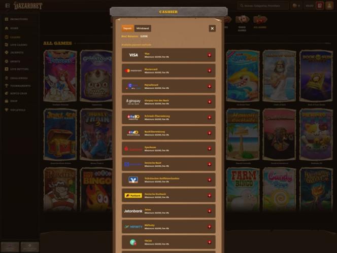 कैसीनो के कैशियर में विभिन्न ऑनलाइन भुगतान प्रणालियां, लोकप्रिय ई-वॉलेट जैसे कि रेवोल्यूट, स्क्रिल, नेटेलर, आदि, क्रेडिट और डेबिट कार्ड, वायर बैंक ट्रांसफर, साथ ही लोकप्रिय क्रिप्टोकरेंसी विकल्प और डिजिटल सिक्के ( बिटकॉइन, डॉगकॉइन, लाइटकॉइन और टीथर ) शामिल हैं।