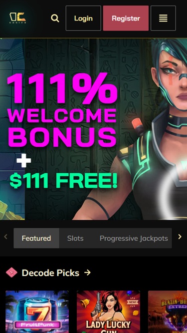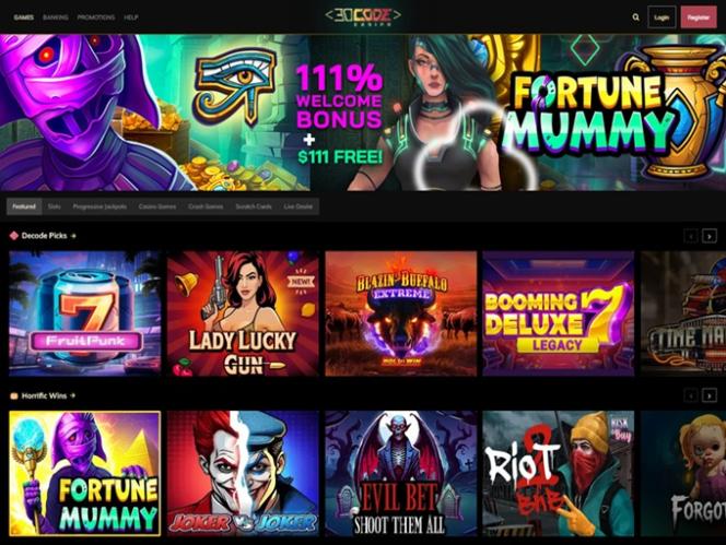 डिकोड कैसीनो संयुक्त राज्य अमेरिका और कनाडा के खिलाड़ियों के लिए एक ऑनलाइन कैसीनो है। यह उसी समूह का हिस्सा है जो स्लोटो'कैश , डेज़र्ट नाइट्स, मियामी क्लब और अन्य अमेरिकी-उन्मुख ब्रांडों जैसी सहयोगी साइटों का संचालन करता है। ध्यान दें कि इस समीक्षा को लिखते समय, यह कैसीनो बिना किसी जुआ लाइसेंस के संचालित हो रहा था।