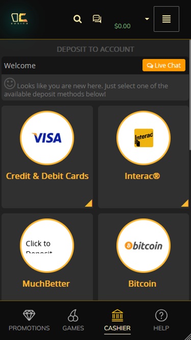 कैसीनो का कैशियर क्रिप्टोकरेंसी और पारंपरिक भुगतान विकल्प जैसे डेबिट और क्रेडिट कार्ड, बैंक ट्रांसफर, ई-वॉलेट और धन हस्तांतरण के लिए अन्य ऑनलाइन सिस्टम दोनों का समर्थन करता है।