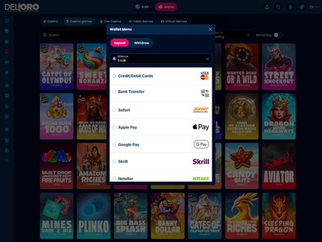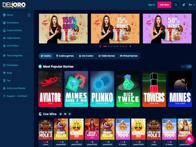 अगर आप ऑनलाइन स्पोर्ट्स बेटिंग में रुचि रखते हैं, तो ध्यान दें कि डेल ओरो में आकर्षक स्पोर्ट्स इवेंट शामिल हैं। हालाँकि, हमेशा की तरह, हमारा ध्यान कैसीनो ऑफर पर ज़्यादा है, तो आइए इसे देखें!