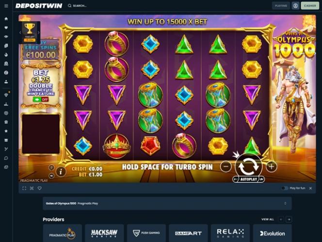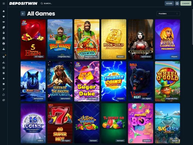 डिपॉजिटविन कैसीनो यह सही करता है, क्योंकि खिलाड़ियों के पास उद्योग में कुछ सर्वोत्तम प्रदाताओं जैसे बेटसॉफ्ट, ब्लूप्रिंट गेमिंग, एंडोर्फिना, इवोल्यूशन गेमिंग, गेमोमैट, पुश गेमिंग, प्रैगमैटिक प्ले, क्विकस्पिन और अन्य में से चुनने की क्षमता होगी।