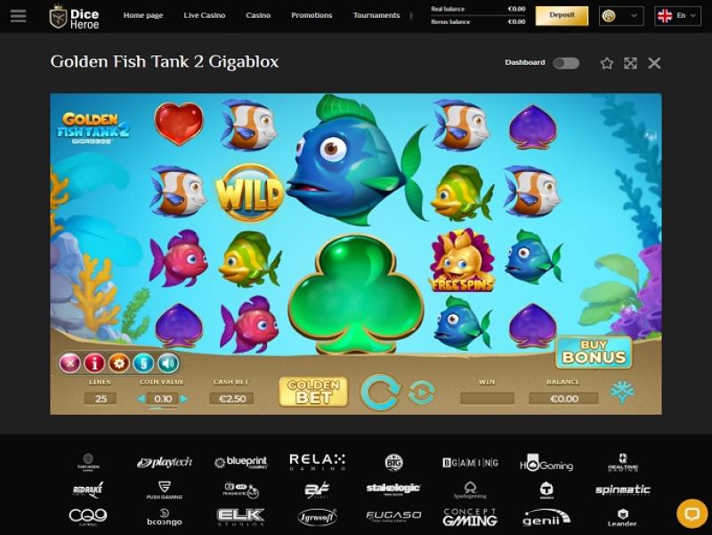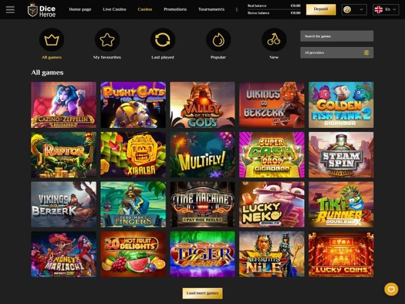 जैसा कि हमने पहले ही उल्लेख किया है, डाइसहीरो के पास एक बड़ी गेमिंग लाइब्रेरी है जो प्रसिद्ध गेम आपूर्तिकर्ताओं की एक लंबी सूची द्वारा प्रदान की गई है जैसे: यग्द्रासिल, रिलैक्स गेमिंग, स्पिनोमेनल और अन्य।