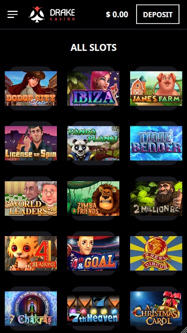 Drake Casino की लाइब्रेरी का सबसे लोकप्रिय हिस्सा यह है कि कैसीनो BetSoft के Slots 3 सीरीज़ के सभी 3D स्लॉट्स उपलब्ध कराता है। ये गेम्स काफी संख्या में हैं और बेहतरीन प्रस्तुति के साथ-साथ इंटरैक्टिव सुविधाएँ भी प्रदान करते हैं। इसके अलावा, इनमें से कई गेम्स मोबाइल डिवाइस पर बिना किसी डिस्प्ले या गेमप्ले में कमी के खेले जा सकते हैं।