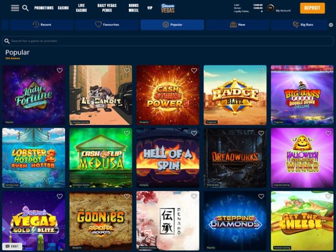 ड्रीम वेगास कैसीनो Microgaming, Net Entertainment, 1x2gaming, Barcrest, Big Time Gaming, ELK Studios, Evolution Gaming, EYECON, Ezugi, lightningboxgames, Novomatic, Oryx, Play'n GO, Rabcat, Relax Gaming, Thunderkick, Wazdan, Realistic Games, Stakelogic, Pragmatic Play, Nolimit City, Felt Gaming, Red Tiger Gaming, IGT, Spinomenal, Red Rake Gaming, Fantasma Games, FunFair, SYNOT Games, Kalamba, Revolver Gaming, Skywind, Spinmatic, Triple Edge Studios, BGAMING, Northern Lights Gaming, Stormcraft Studios, Switch Studios, Electric Elephant Games, Pocket Games Soft, All41 Studios, Gluck Games, Gameburger Studios, Pulse 8 Studios, Slot Factory, Neon Valley Studios, Golden Rock Studios, Spearhead Studios, Swintt, Shuffle Master, SpinPlay Games, HungryBear Gaming, GONG Gaming, Blue Guru Games, Lady Luck Games, On Air Entertainment, Buck Stakes Entertainment, Design Works Gaming, Games Global, Ainsworth, Bally Technologies, Blueprint Gaming, Endemol Games, EveryMatrix, Greentube, Leander Games, Merkur Gaming, NextGen, NYX Interactive, Push Gaming, Tom Horn Gaming, WMS, Inspired Gaming, Gaming Realms, SG Interactive, Gamomat, Red7Mobile, CORE Gaming, Scientific Games, Side City Studios, Reel Time Gaming, Authentic Gaming, Bally Wulff, Iron Dog Studio, Old Skool Studios, Foxium, Betdigital, Just For The Win, Storm Gaming Technology, PearFiction Studios, Apollo Games, Wild Streak Gaming, Slingshot Studios, Fortune Factory Studios, Jade Rabbit Gaming, RubyPlay, 4ThePlayer, AvatarUX, Gamevy, Crazy Tooth Studio, NetGaming, ReelPlay, AGS Interactive, Alchemy Gaming, Black Pudding Games, Snowborn Games, Hacksaw Gaming, Max Win Gaming, Gold Coin Studios, Bang Bang Games, Half Pixel Studios, Slotmill, SilverBack Gaming, Peter And Sons, Eurostar Studios, Aurum Signature Studios, Armadillo Studios, Lucksome Gaming, Area Vegas, RAW iGaming, Leap Gaming, Wishbone Games, Spribe, Circular Arrow, Print Studios, Gaming Corps, HammerTime Games, Four Leaf Gaming, INO Games, Nailed It! Games, Neko Games, Reel Kingdom, Oros Gaming and Light & Wonder द्वारा संचालित है और कैसीनो का प्लेटफ़ॉर्म आपके इंटरनेट ब्राउज़र के माध्यम से उपलब्ध है। खेलने के लिए आपको कोई सॉफ़्टवेयर डाउनलोड करने की आवश्यकता नहीं है, और कैसीनो मोबाइल उपकरणों के माध्यम से भी खेलने का समर्थन करता है, जिससे आप अपने स्मार्टफ़ोन या टैबलेट के माध्यम से जुआ खेल सकते हैं।