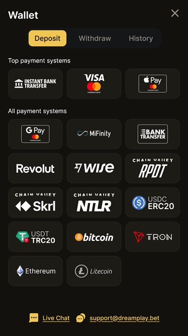ड्रीमप्ले में, जुआरियों को अपने मोबाइल फोन या डेस्कटॉप डिवाइस से स्लॉट, लाइव कैसीनो, इंस्टेंट गेम, टेबल गेम, टूर्नामेंट गेम और बहुत कुछ का आनंद लेने का अवसर मिलता है।
