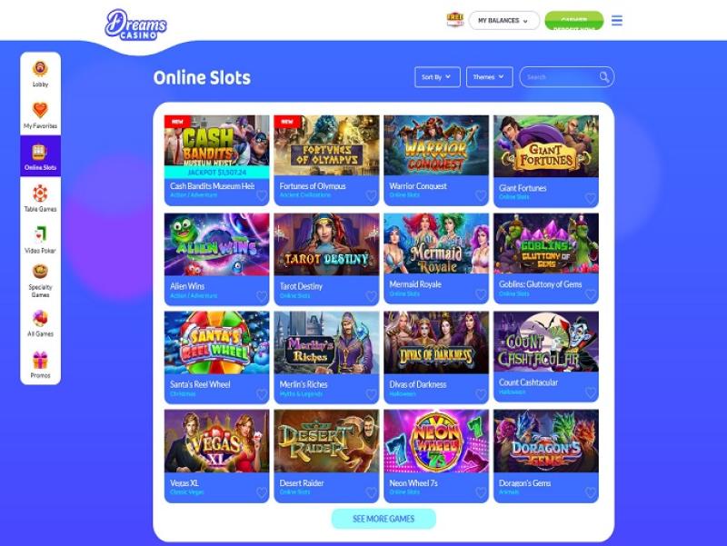Dreams Casino Real Time Gaming and Spinlogic Gaming द्वारा संचालित है, जो इसे एक बड़ी गेम लाइब्रेरी प्रदान करता है जिसे एक समर्पित सॉफ्टवेयर के साथ-साथ एक वेब-आधारित कैसीनो के माध्यम से खेला जा सकता है जिसे आप सीधे अपने वेब ब्राउज़र के माध्यम से एक्सेस कर सकते हैं।अन्य खेल