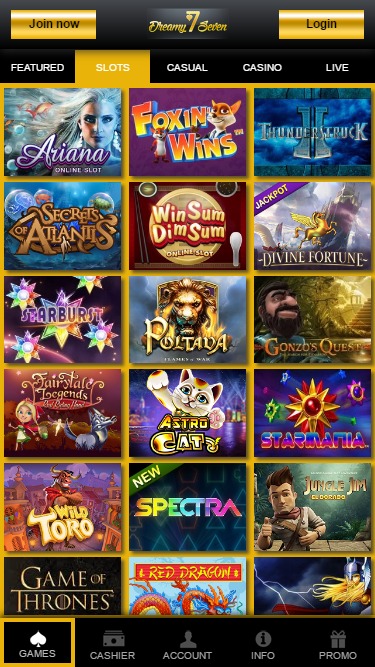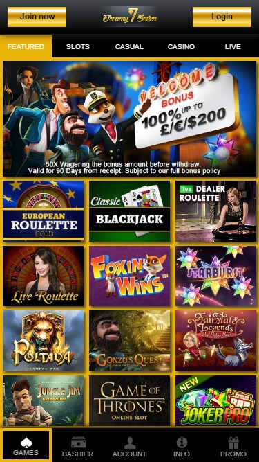 ड्रीमीसेवन कैसीनो Microgaming, 1x2gaming, Big Time Gaming, ELK Studios, Genesis Gaming, Quickspin, Rabcat, Thunderkick, Games Global, 2by2 Gaming, Leander Games, NextGen, ProgressPlay and ReelPlay द्वारा संचालित है, और कैसीनो के खेल एक वेब-आधारित प्लेटफॉर्म के साथ-साथ एक मोबाइल साइट के माध्यम से प्रदान किए जाते हैं, जो स्मार्टफोन और टैबलेट पर खेलने की अनुमति देता है।Blackjack