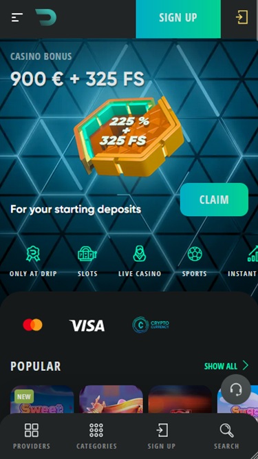 एक ऑनलाइन कैसीनो वेबसाइट का आकर्षक लुक के अलावा, रिस्पॉन्सिव और तेज़ होना भी ज़रूरी है, और DRIP कैसीनो से आप यही उम्मीद कर सकते हैं। सट्टेबाज़ बिना किसी रुकावट या गड़बड़ी के वेबसाइट का आसानी से इस्तेमाल कर पाएँगे।