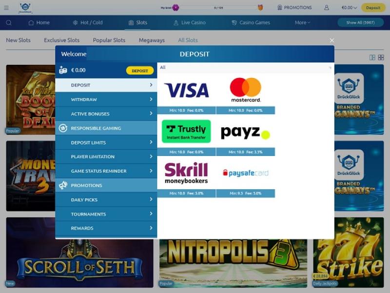 बैंकिंग प्रणाली काफी मज़बूत है, जिसमें PayPal, Skrill, Neteller, Visa, SOFORT, और कई अन्य जमा और निकासी विधियाँ किसी भी समय उपलब्ध हैं। भुगतान का समय उचित है, और खिलाड़ी ई-वॉलेट से उसी दिन भुगतान की उम्मीद कर सकते हैं। क्रेडिट कार्ड और वायर ट्रांसफर पूरा होने में 2 से 7 कार्यदिवस लग सकते हैं।