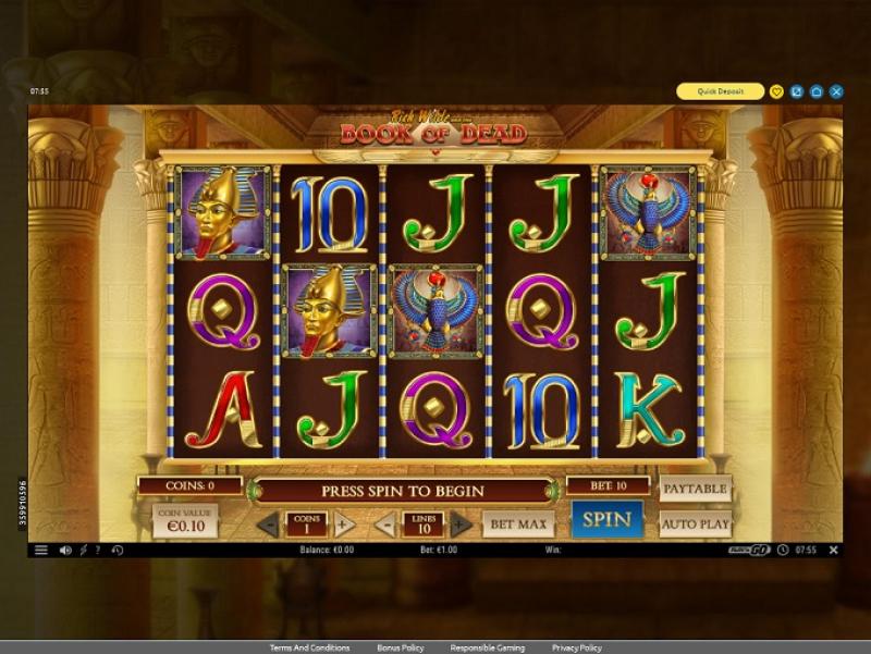 New Customer Offer. T&C’s Apply. 18+. PLUS 50 Free Spins. Min. deposit: €10, max. Bonus €100. Game: Book of Dead, Spin Value: €0.10. Alternative Game: Spinning Wilds; Spin value: €0.10 WR of 30x Deposit + Bonus amount and 60x Free Spin winnings amount (only Slots count) within 30 days. Max bet is 10% (min €0.10) of the free spin winnings and bonus amount or €5 (lowest amount applies). Spins must be used and/or Bonus must be claimed before using deposited funds. Deposit/Welcome Bonus can only be claimed once every 72 hours across all Casinos.