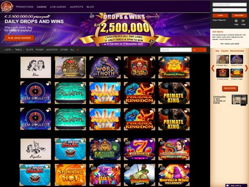 ईटस्लीपबेट कैसीनो Microgaming, Net Entertainment, BetSoft, 1x2gaming, Big Time Gaming, ELK Studios, Evolution Gaming, Ezugi, Habanero Systems, iSoftBet, Oryx, Play'n GO, Quickspin, Relax Gaming, Thunderkick, Yggdrasil, Endorphina, Wazdan, GameArt, Betgames, Pragmatic Play, Felt Gaming, Red Tiger Gaming, Fugaso, Swintt, SpinPlay Games, Buck Stakes Entertainment, Games Global, Wizard Games, Pariplay, Push Gaming, Tom Horn Gaming, Gamomat, BF Games, betiXon, Slotmotion, ReelPlay, Hacksaw Gaming, Half Pixel Studios and Eurostar Studios द्वारा संचालित है, और कैसीनो के गेम एक वेब-आधारित इंस्टेंट प्ले प्लेटफ़ॉर्म के माध्यम से उपलब्ध कराए जाते हैं। इसका मतलब है कि आपको कोई सॉफ़्टवेयर डाउनलोड करने की ज़रूरत नहीं है, और आप अपने इंटरनेट ब्राउज़र के ज़रिए गेम खेल सकते हैं। मोबाइल प्ले भी उपलब्ध है, जिससे पंटर्स स्मार्टफ़ोन या टैबलेट के ज़रिए खेल सकते हैं।