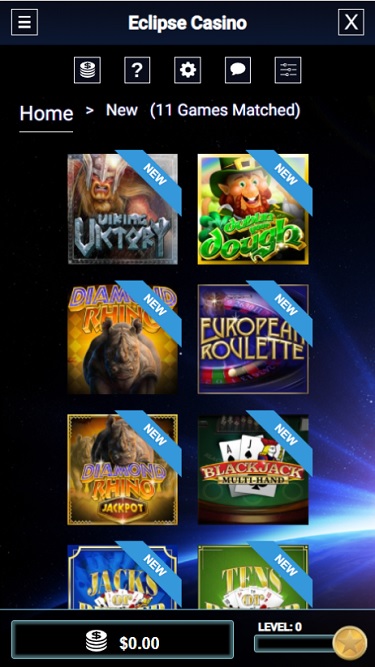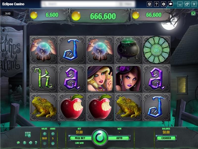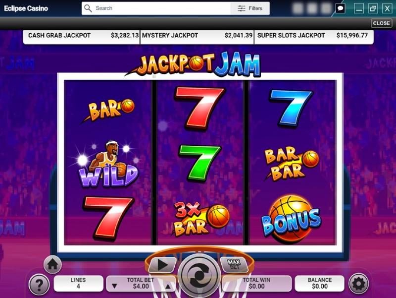 एक्लिप्स कैसीनो में खेलने के लिए वीडियो और क्लासिक स्लॉट्स की अच्छी-खासी संख्या उपलब्ध है, साथ ही राइवल की पूरी लाइब्रेरी भी उपलब्ध है। कैसीनो में जीतने के लिए कुछ प्रोग्रेसिव जैकपॉट भी उपलब्ध हैं, और मोबाइल स्लॉट्स के लिए सपोर्ट आपको चलते-फिरते खेलने की सुविधा देता है। उपलब्ध स्लॉट्स की क्वालिटी बहुत अच्छी से लेकर खराब तक होती है, और माइक्रोगेमिंग, नेट एंटरटेनमेंट, प्लेटेक, आरटीजी आदि जैसे अन्य डेवलपर्स के गेम्स की तुलना में पुराने गेम्स अपनी उम्र का एहसास दिलाने लगते हैं।